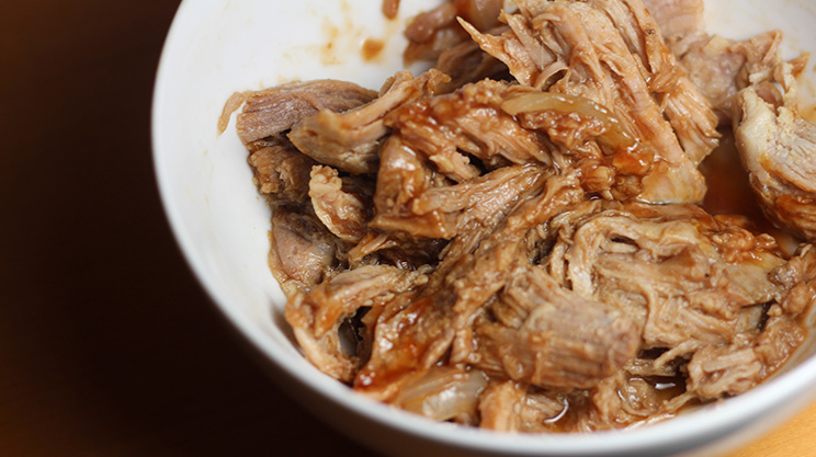 I recommend using a pork tenderloin because it’s so lean. It will be a little more difficult to shred because of this, but it’s worth it to save on fat calories. Choose a low sugar barbecue sauce (less than 6 grams per serving is a good goal) and put it on the side to keep portions small. Dip your fork in the sauce for each bite instead of smothering. Yes, I know it’s better that way. There’s no argument there!